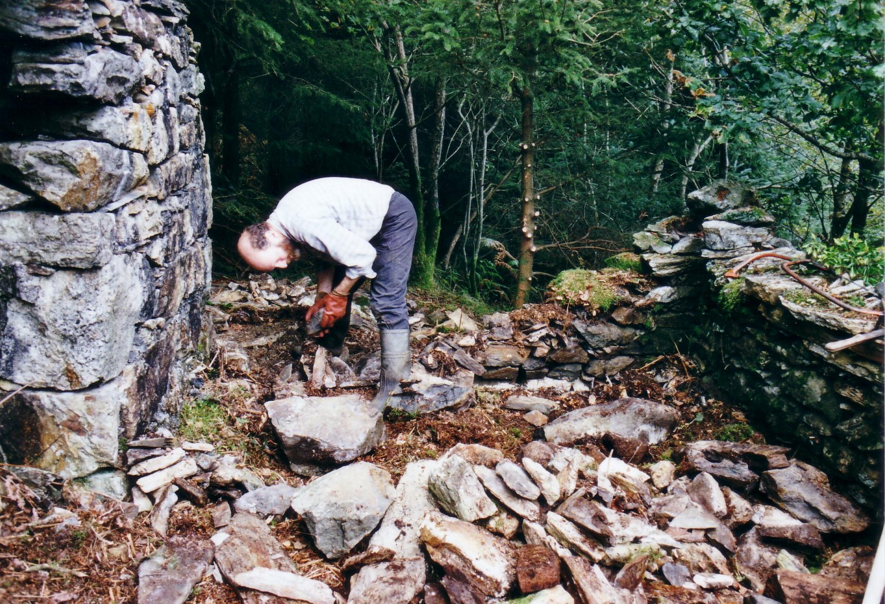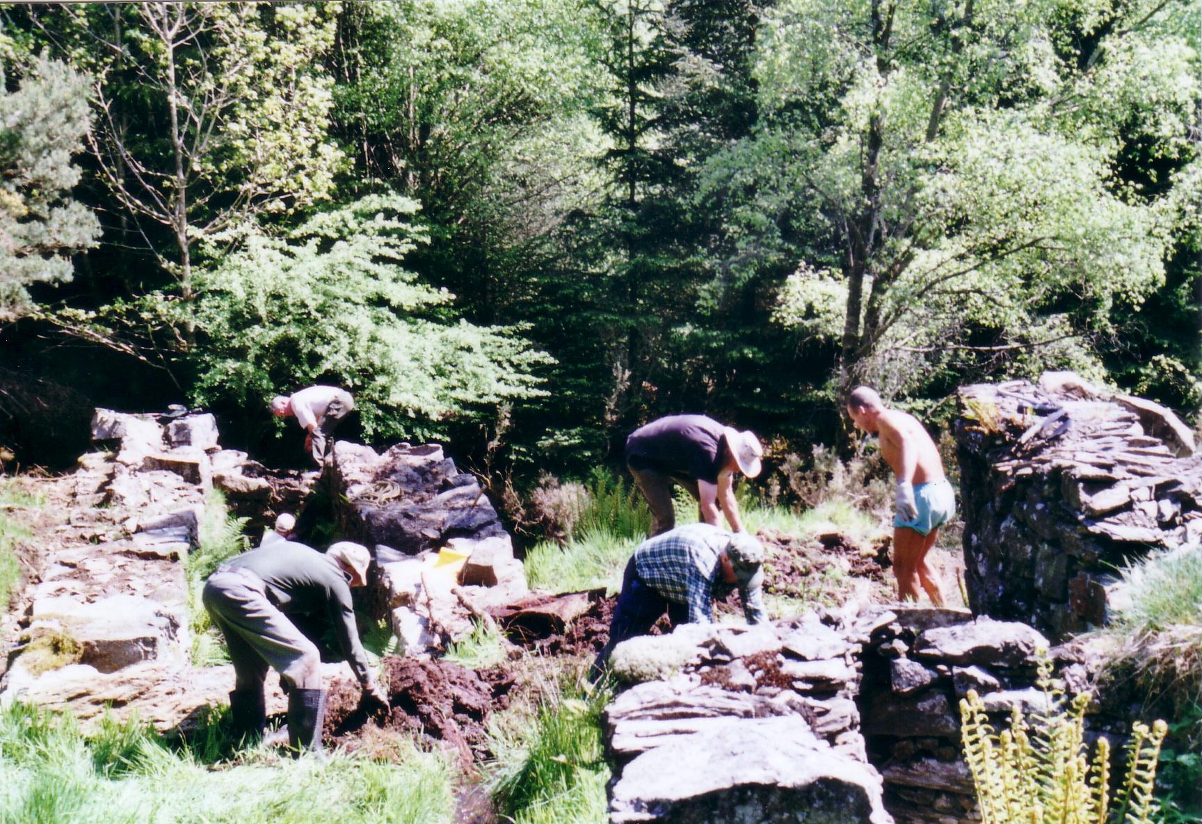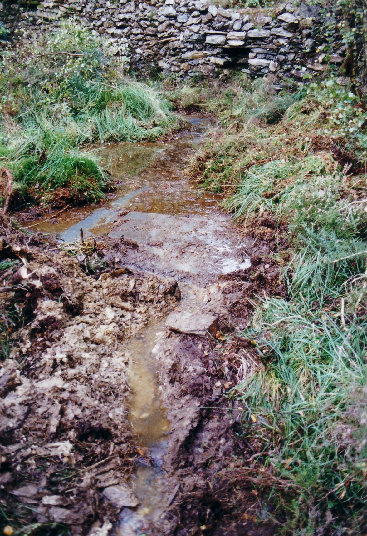 In 2003 at the suggestion of David Bick the Trust carried out a “rescue project” at Catherine & Jane Consols mine. The 35 foot Bigland’s wheel-pit was being eroded by a stream that had made its course into and through the wheel-pit over the years since the mine closed. We diverted the stream away from the wheel-pit.