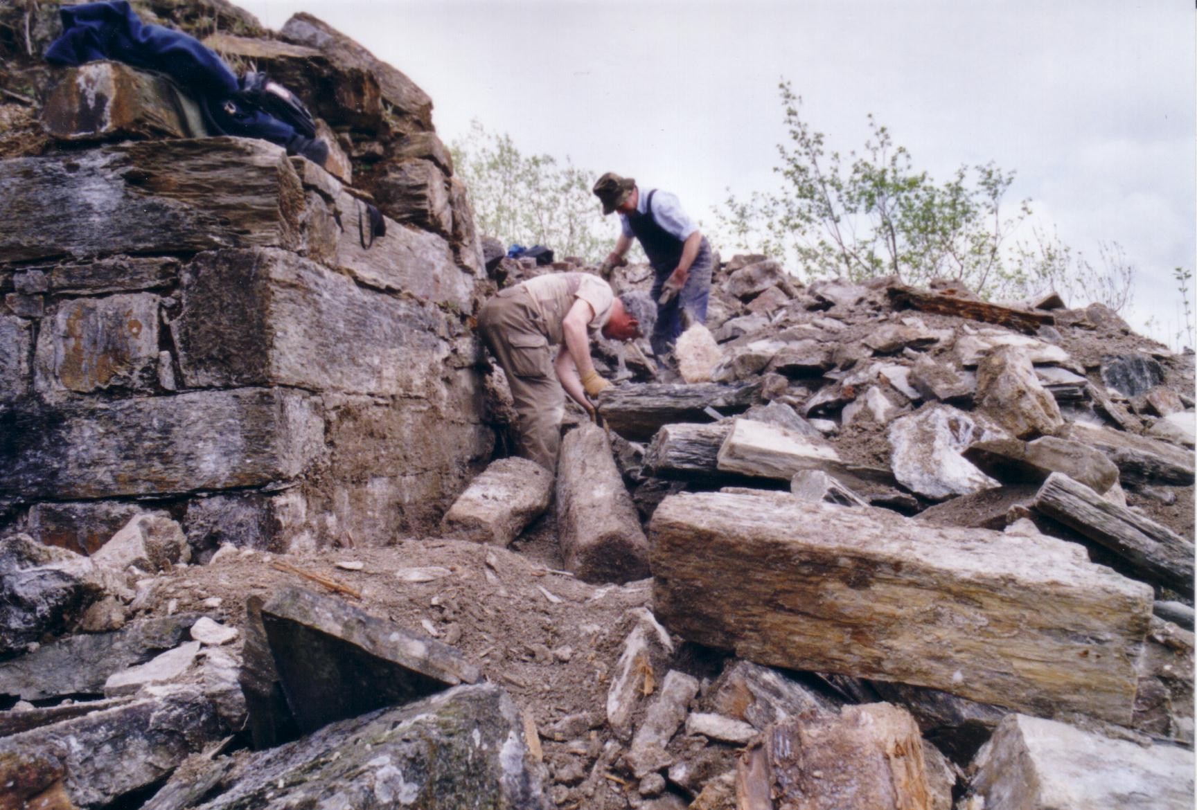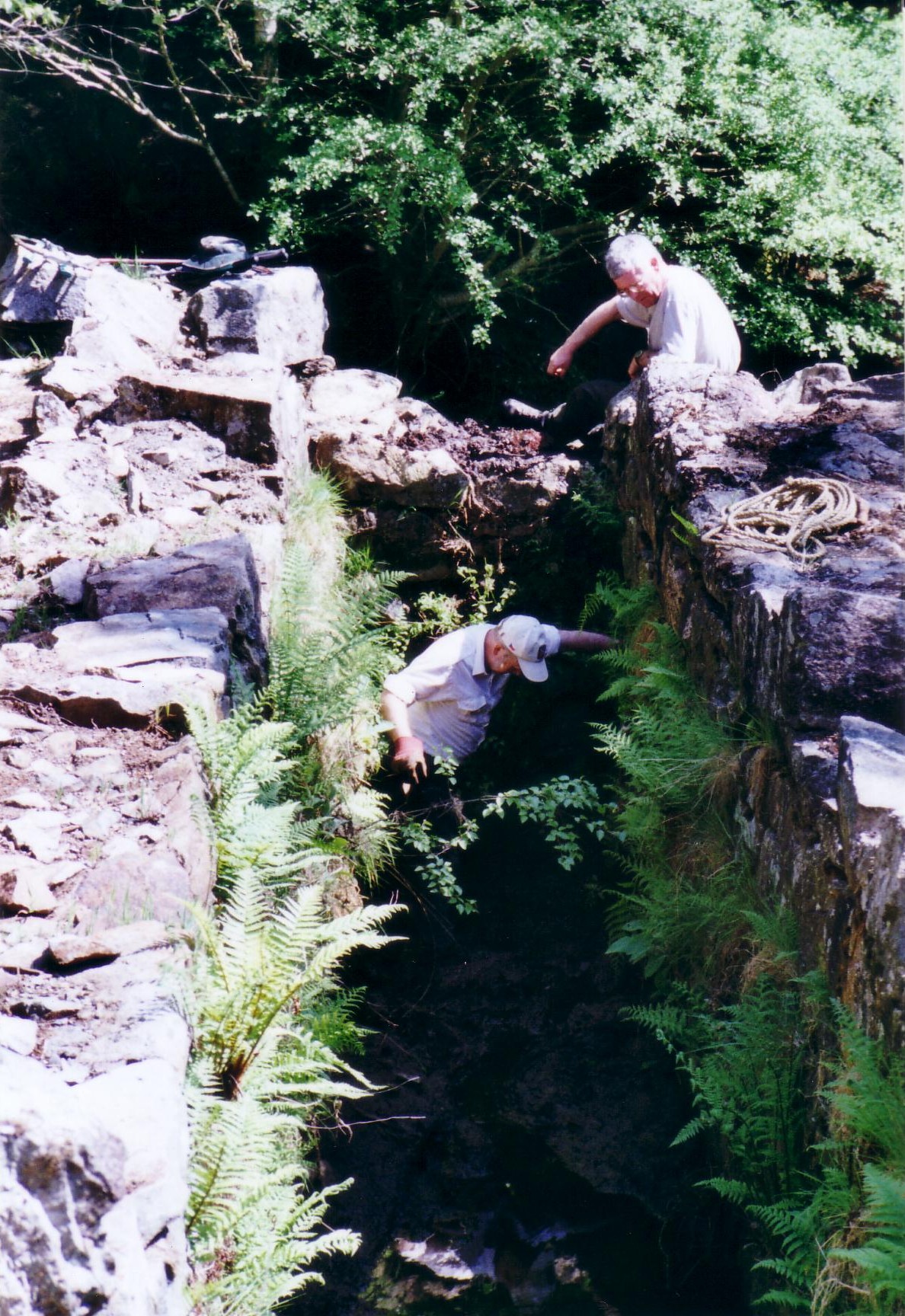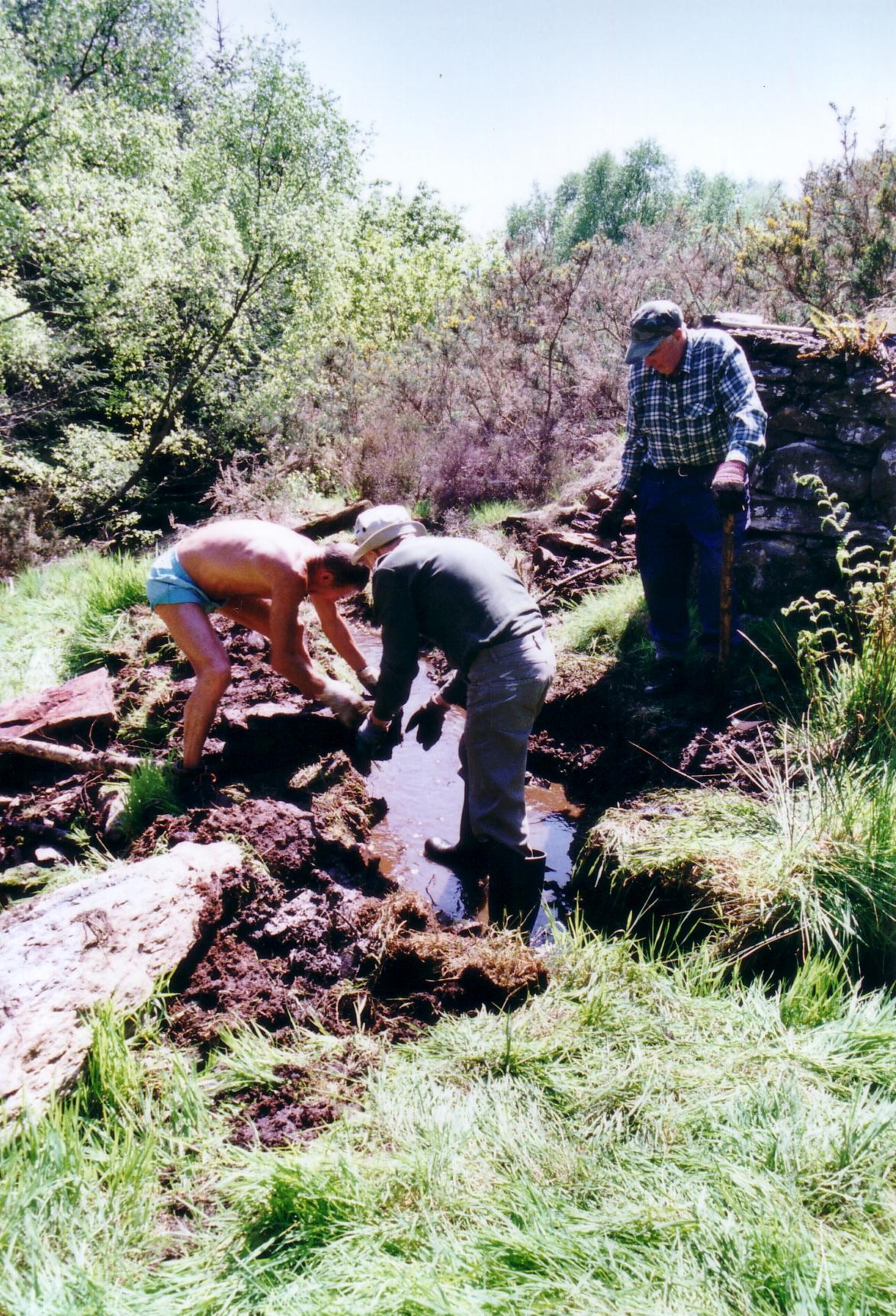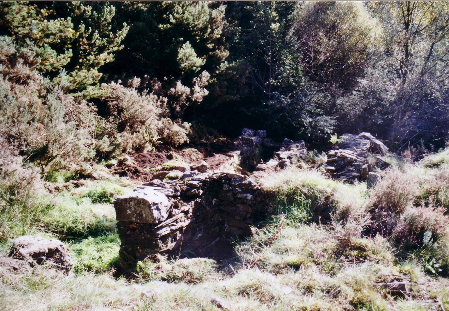 In 2003 at the suggestion of David Bick the Trust carried out a “rescue project” at Catherine & Jane Consols mine. The 35 foot Bigland’s wheel-pit was being eroded by a stream that had made its course into and through the wheel-pit over the years since the mine closed. We diverted the stream away from the wheel-pit.