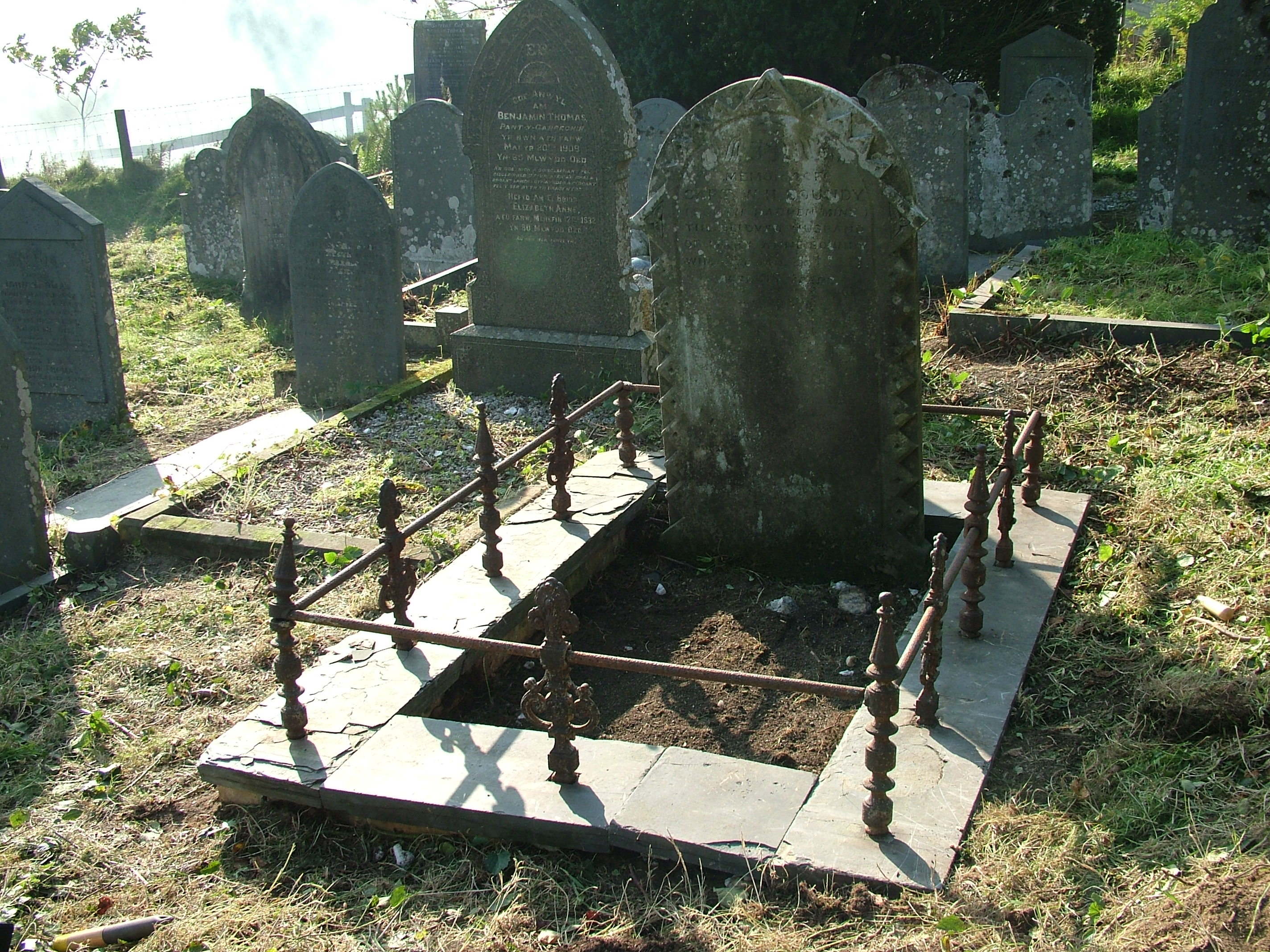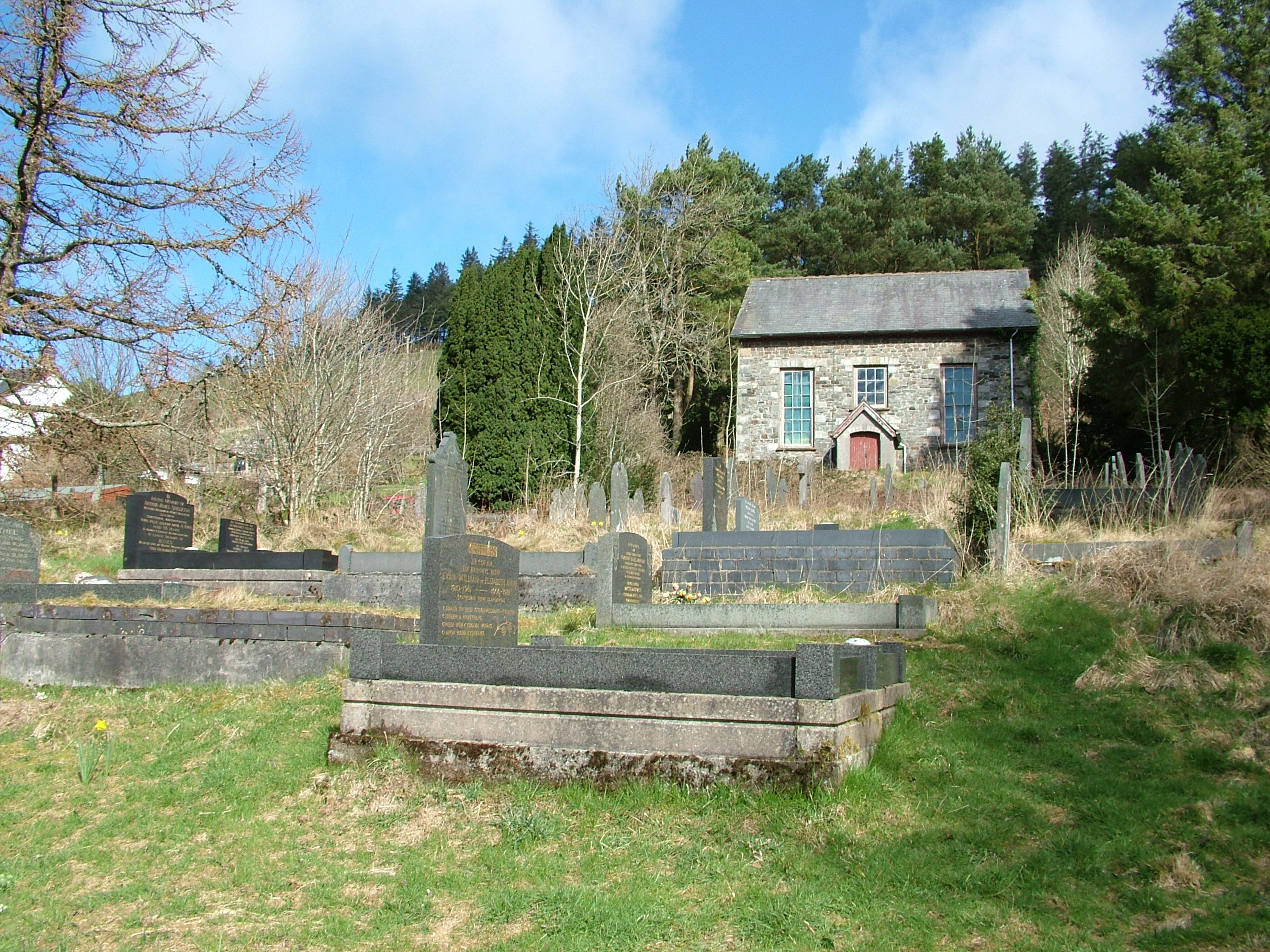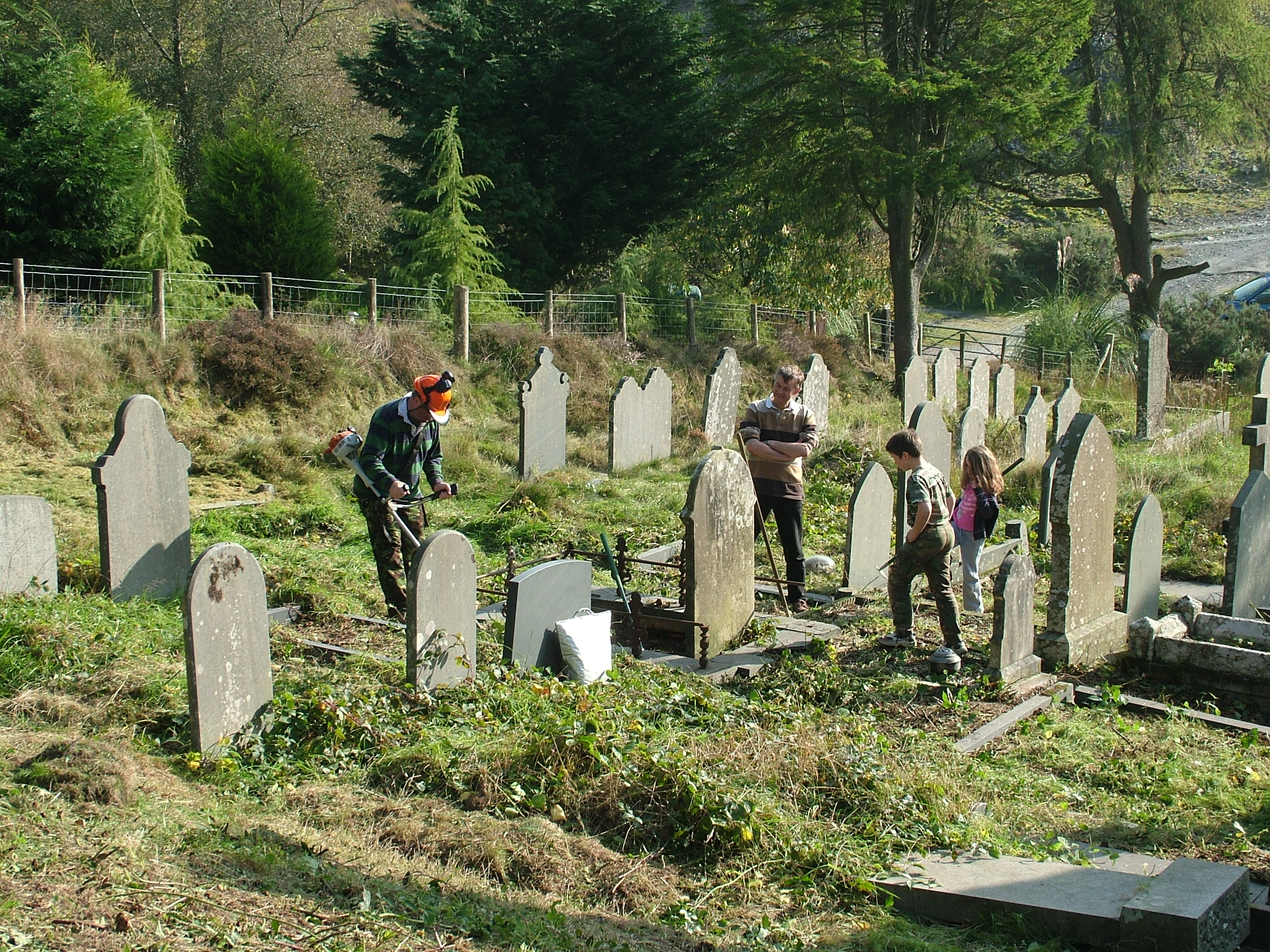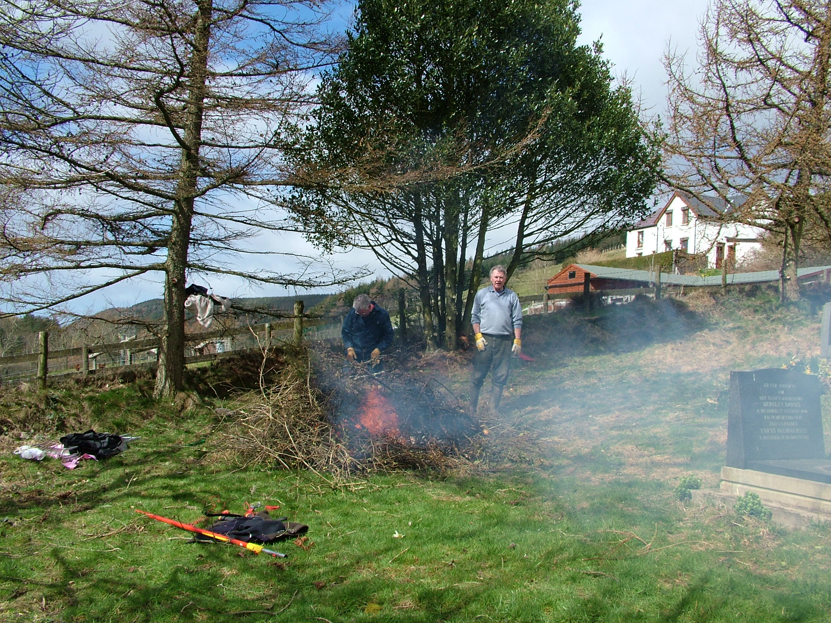 “Thank you so very much for your letter and photographs of Cwmsymlog. My mother, husband David and I visited the graveyard on Bank Holiday Monday to place flowers on family graves ‑ and we couldn’t believe our eyes how the place had changed! We could actually see the path and walk amongst the graves.–We hadn’t realised that you had been there the first weekend in April ‑ I’m so sorry to have missed you all, and the opportunity to thank your team for such a fantastic job. You have all worked extremely hard and we (the Chapel Committee) and myself personally can’t thank you enough for what you have done. It’s so heart warming to know that people like you exist and that you are so ready to help in projects such as these. My mother shed a tear or two when she saw how wonderful the cemetery looked and wants to convey her sincerest thanks to you all.–Once again Mr. Levins, thank you for keeping the Spirit of the Miners alive.–Thank you from the bottom of our hearts for your concern and your hard work. Diolch yn fawr and God Bless you all.”